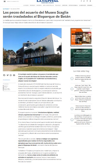 Los rumores fueron creciendo pero nada era explícito. Algunos movimientos daban a entender que querían deshacerse del acuario en el Museo Scaglia. Estas decisiones, sobre todo en materias muy específicas, no son en las gestiones responsables producto del impulso exclusivo de las autoridades. Se tratan con especialistas o investigadores. Aquí no hay un sólo especialista u organismo dedicado al tema que avale la desaparición del acuario. Y si lo tienen que lo muestren.
